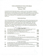 1996 Tom Anderson Guitar Catalog with Pricelist - Page 01