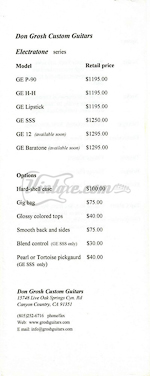 1999 Don Grosh Guitar Brochure and Dealer Packet - Page 02 |