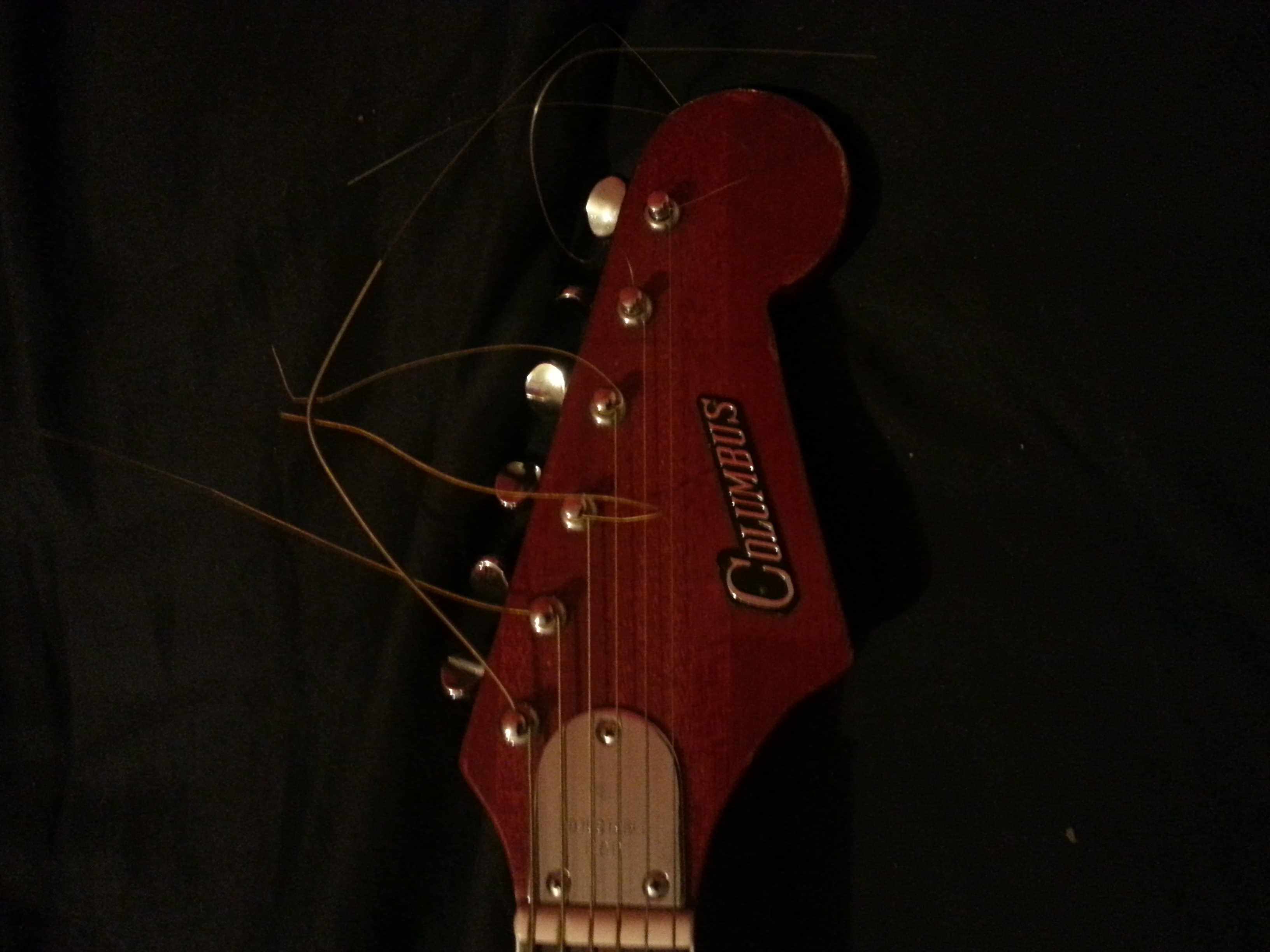 I know this is a pretty old topic now, but Crisanto's description seems to fit a columbus guitar I own quite well, and as it seems quite rare, this info might be of some use to someone out there